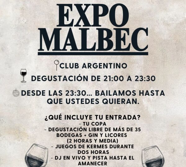 EXPO MALBEC – LA KERMÉS DEL MALBEC (Ultima Edición) SÁBADO 18 DE ABRIL — 20:30 HS 📍 Club Argentino Una noche pensada para los amantes del vino… y para los que simplemente